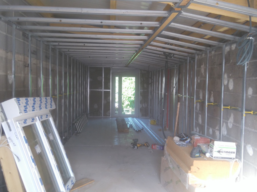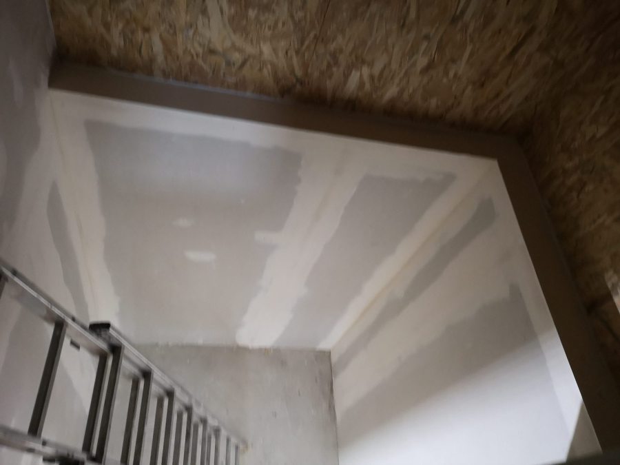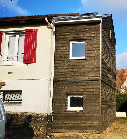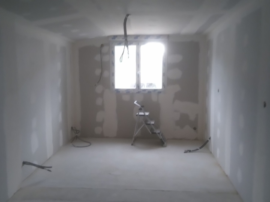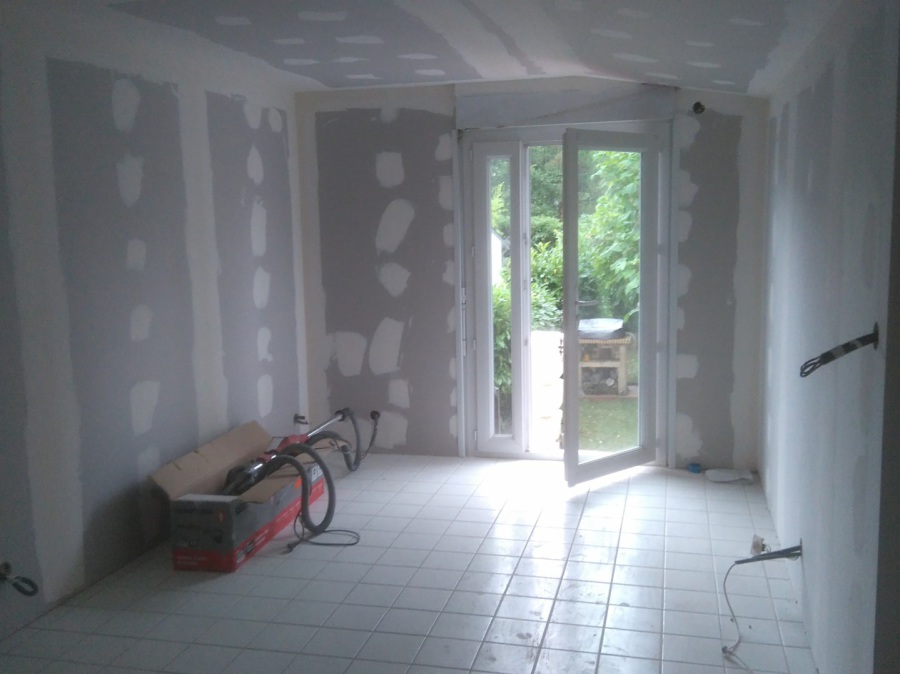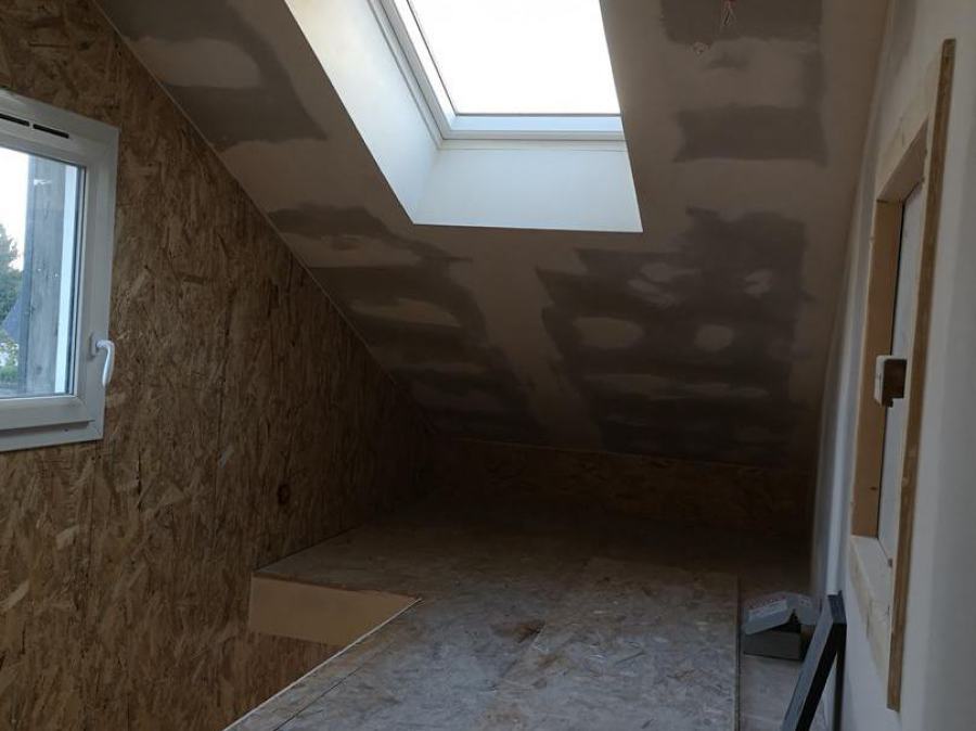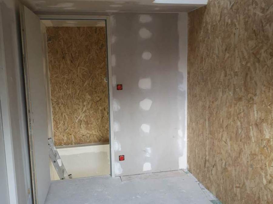 Travaux de plâtrerie sur extension en ossature bois avec isolatin en laine de verre LD 0.32 avec création de porte RDC + étage